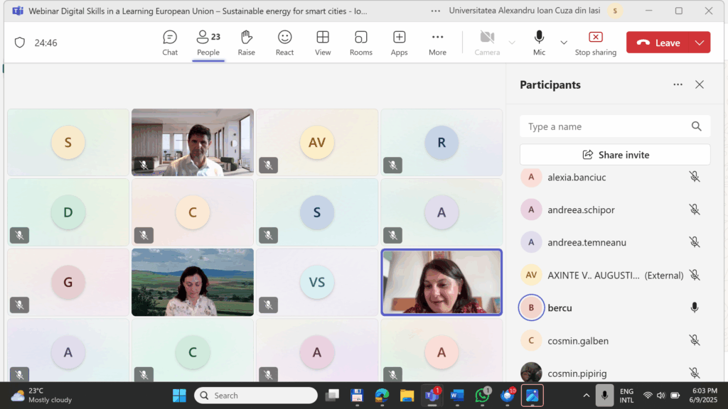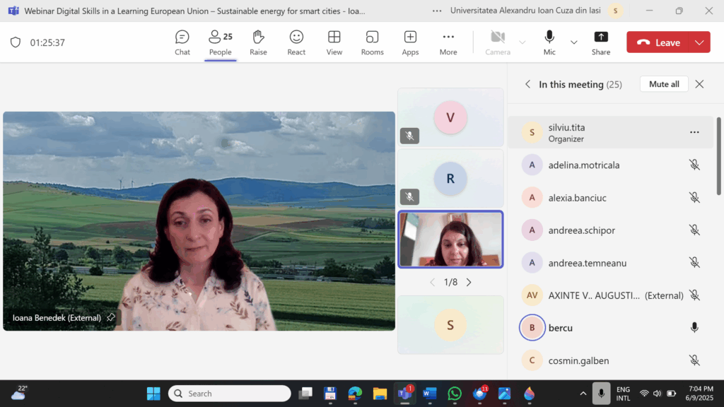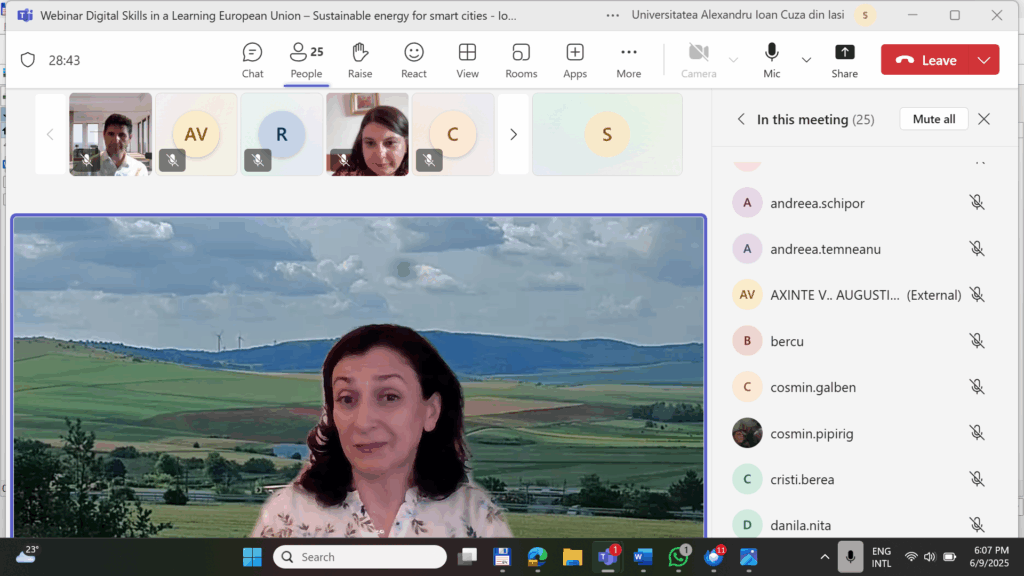 Webinar – Digital Skills in a Learning European Union – Sustainable energy for smart cities 09.06.2025 ora 18.00 online – Ioana Benedek